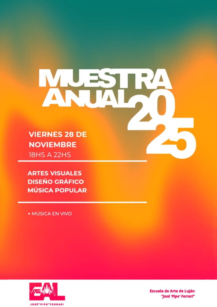 EL VIERNES 28 A PARTIR DE LAS 18 H LOS ESPERAMOS EN LA SEDE DE LA ESCUELA DE ARTE «JOSE ‘PIPO’ FERRARI» PARA COMPARTIR DE LA MUESTRA ANUAL DE TOD@S LOS ESTUDIANTES, HABRA SERVICIO DE CANTINA A CARGO DE COOPERADORA DE «LA PIPO».