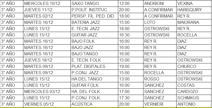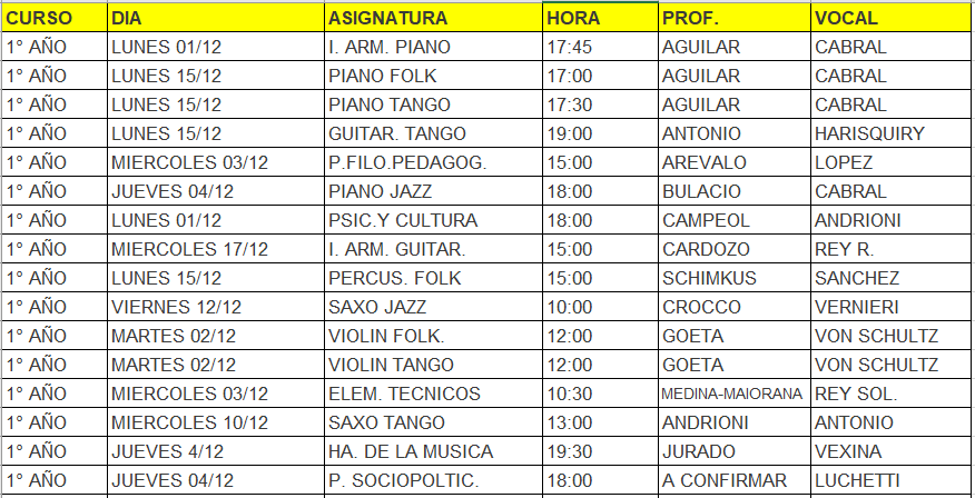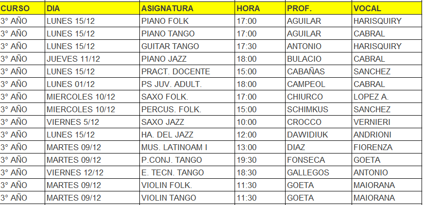 Inscripciones a las mesas vía formulario web (sin excepción) a partir del 24/11 al 27/11